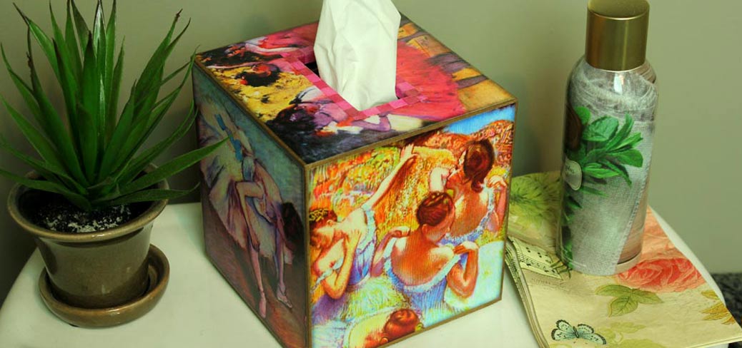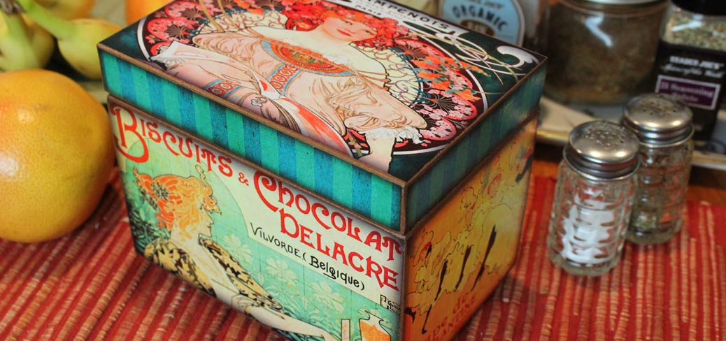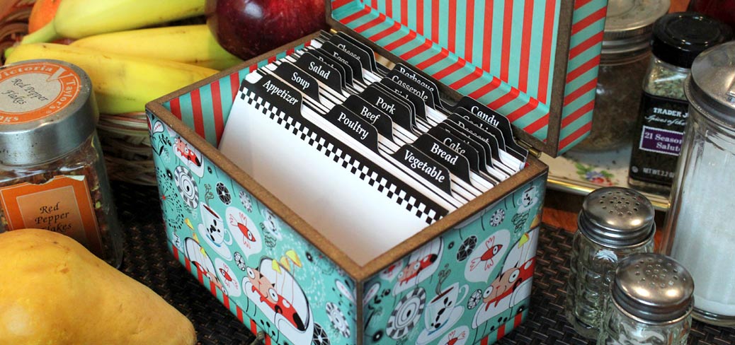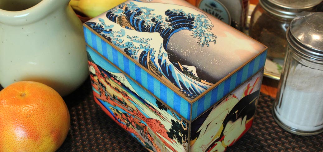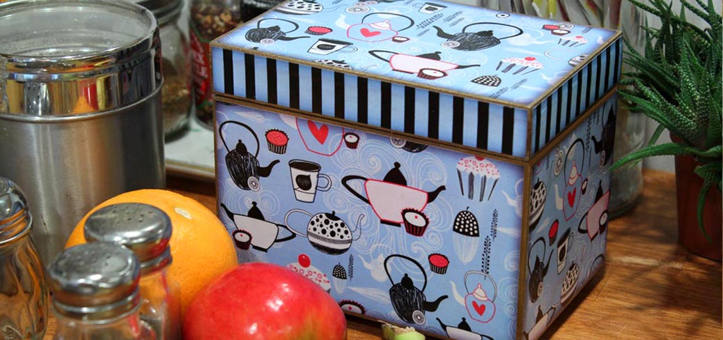 Keep your home tidy with our handmade recipe boxes, tissue boxes, tea boxes or trays.