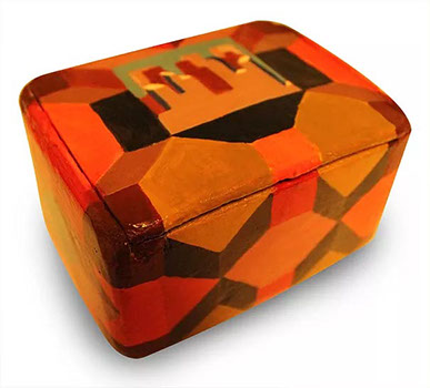 I began by making them out of balsa wood and plaster. Using acrylics I painted on top of the wet plaster and finished the insides with felt. Each one was signed and dated and given away to friends. The plaster was an interesting surface - but over time the boxes weren't very durable and cracked often.