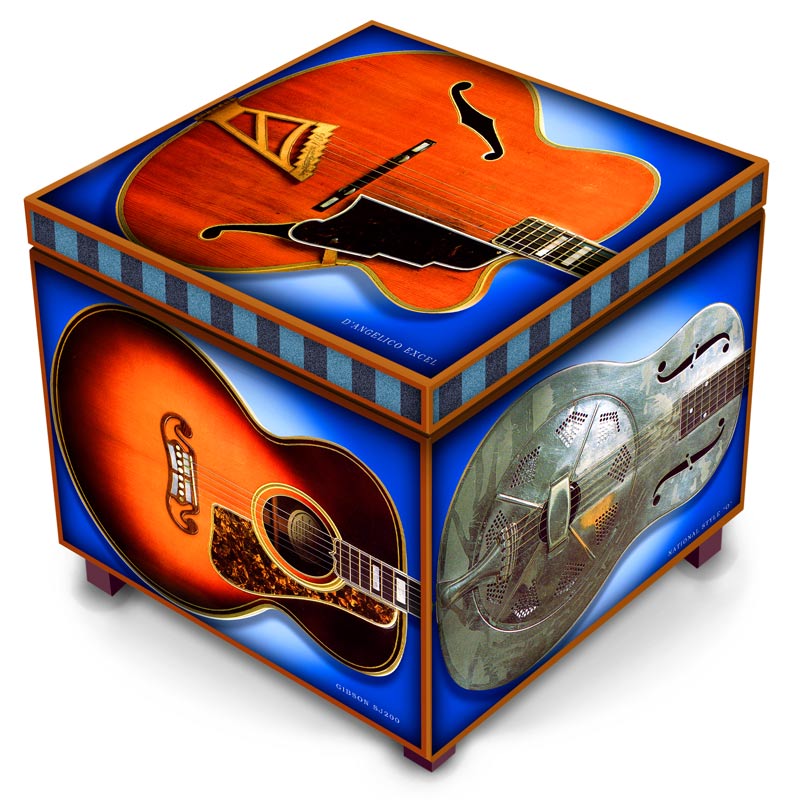National Style “O”, Gibson SJ200, Guild F50R, and