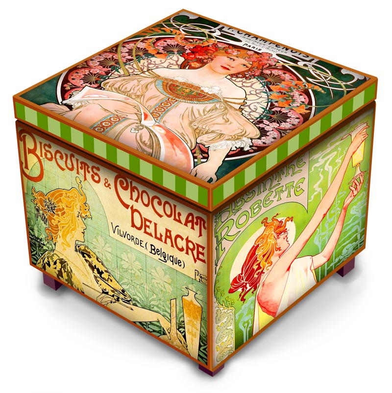 Many are by Alphonse Mucha, the father of the Art Nouveau