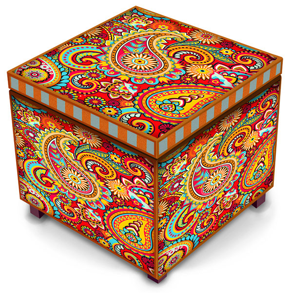 Paisley is an ornamental design using a teardrop-shaped motif with a curved upper end. Of Persian origin, shawls embroidery were purchased by royalty in Persia and the Mughal empire of India.