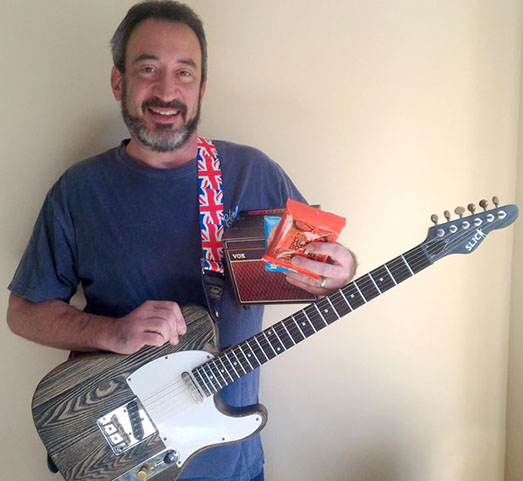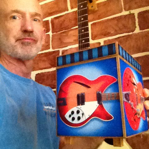 Walt Weinshenk of Gaithersburg, Maryland with his electric guitar themed guitar box.
