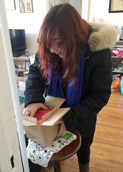Ivy Lieberman of New York City receiving her custom elephant themed "Secret" box.